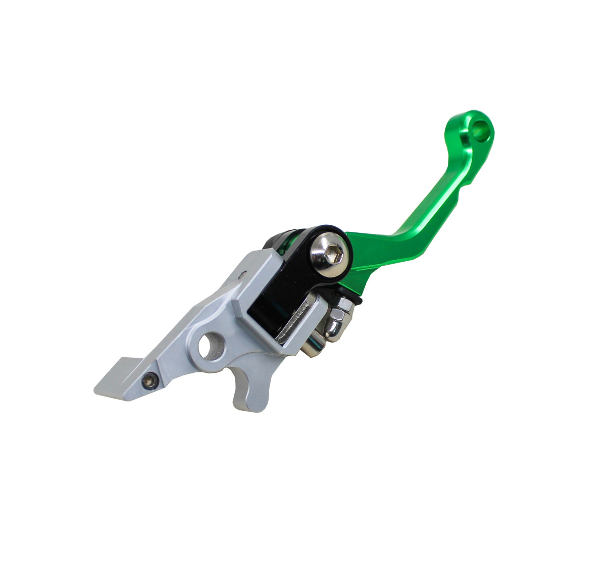 Высокопрочный рычаг управления тормозом 360 градусов. Изготовлен из CNC алюминия, выдерживают удары при падениях байка и позволят надолго забыть про сломанную ручку. Он откидывается в случае падения или опрокидывания байка. Вместо того, чтобы изгибаться или ломаться, рычаг просто поворачиваются наружу, когда происходит удар. Одновременно, откидная конструкция защищает кисти и предплечья райдера от травмирования в случаях соскальзывания рук с руля во время падения. Рычаг тормоза имеют большой диапазон регулировок. Эргономичная форма дает максимальный комфорт при управлении байком. Рычаг универсален. Может быть установлен практически на любой байк с диаметром руля 22 мм. Цвет зеленый.